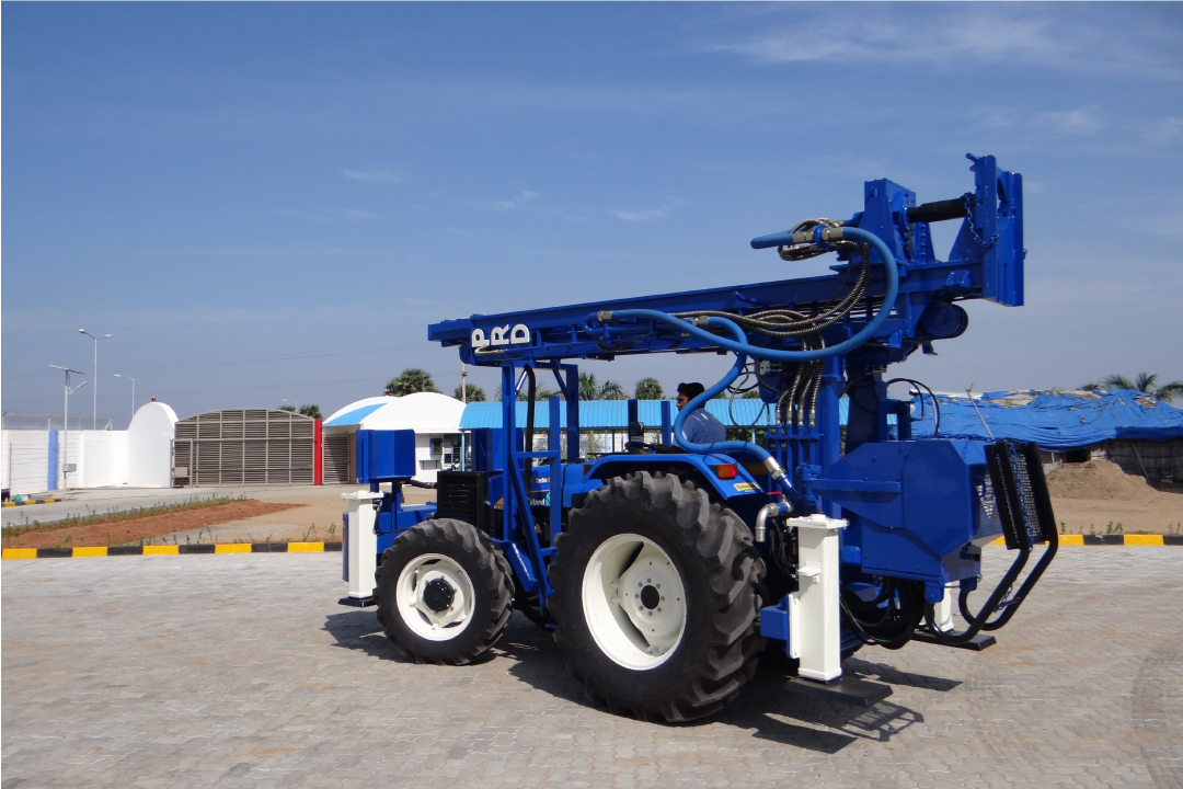 The ingenious PRD Tractor Rig designed for India is tested and proved to be as efficient as the automatic drilling rig and as cost-effective as the conventional one. The easy-to-use, easily portable Tractor Rig is a boon-on-wheels for the Indian construction companies.